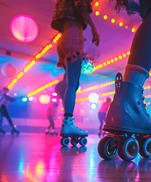 Transform the rink into a dancefloor under pulsating lights and retro beats.